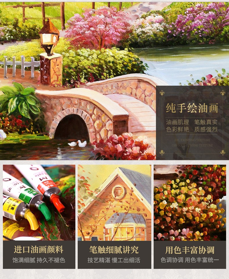 歐式玄關裝飾畫山水過道招財風水靠山寶盆山豎版美式掛畫油畫壁畫
